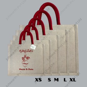Jute Cotton (JuCo) Bag for Housewarming Return Gift in Balaji Shanka – Chakra Theme – with Handle Color Options-Landsape Bag