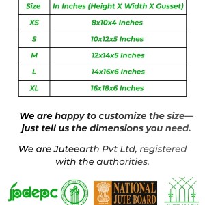 Product Details: ▸ Material: Premium Jute with Lamination – 14,15 Threads per Square Inch Quality ▸ Closure: Available with or without Zipper ▸ Handle: Stitched Cotton Niwar with Inner Cotton Rope – for enhanced strength and long-lasting grip About This Bag: Make your brand stand out with our Custom Printed Jute Bag with Cotton Niwar…